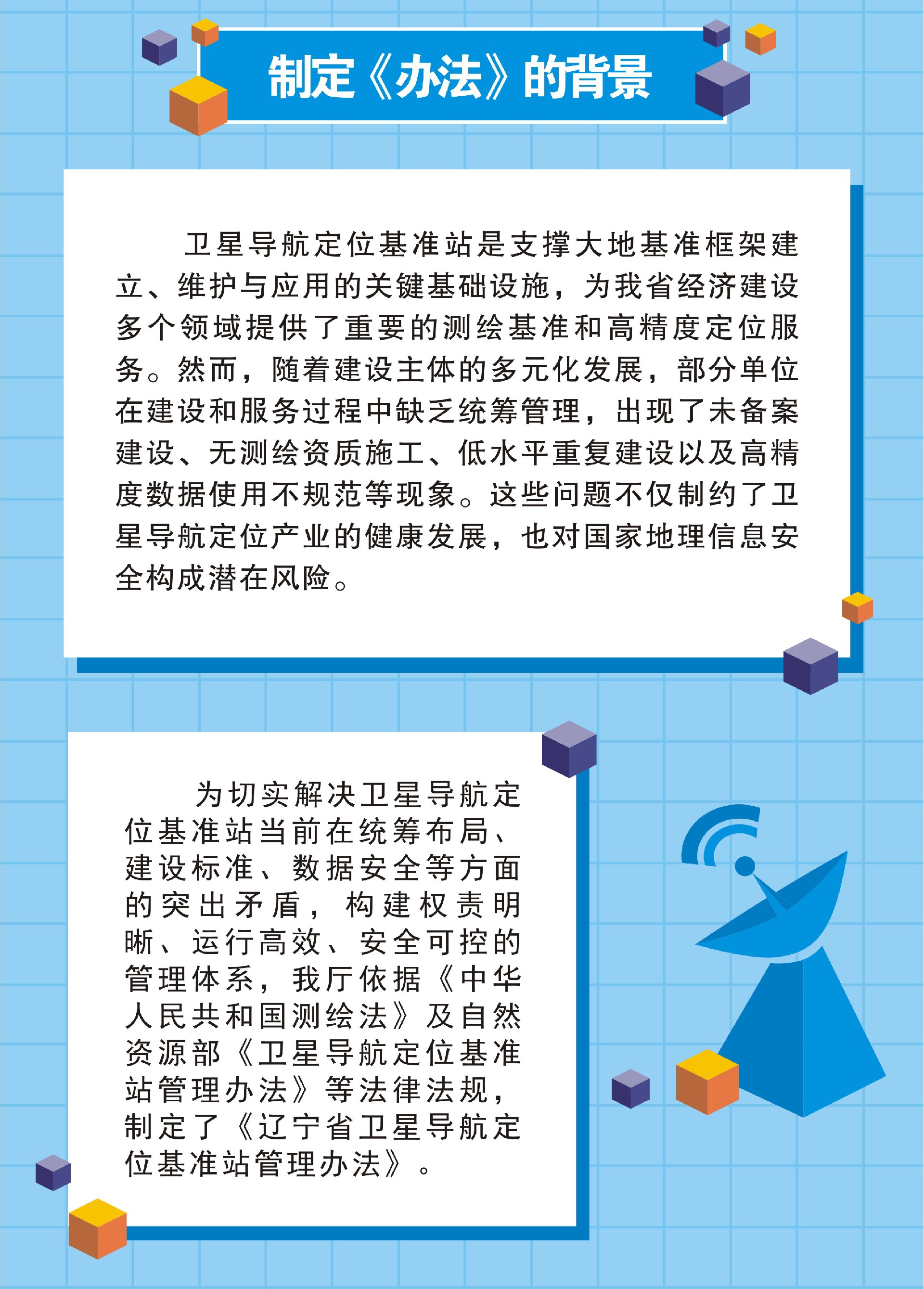 为切实解决卫星导航定位基准站当前在统筹布局、建设标准、数据安全等方面的突出矛盾,构建权责明晰、运行高效、安全可控的管理体系,我厅依据《中华人民共和国测绘法》及自然资源部《卫星导航定位基准站管理办法》等法律法规,制定了《辽宁省卫星导航定位基准站管理办法》。