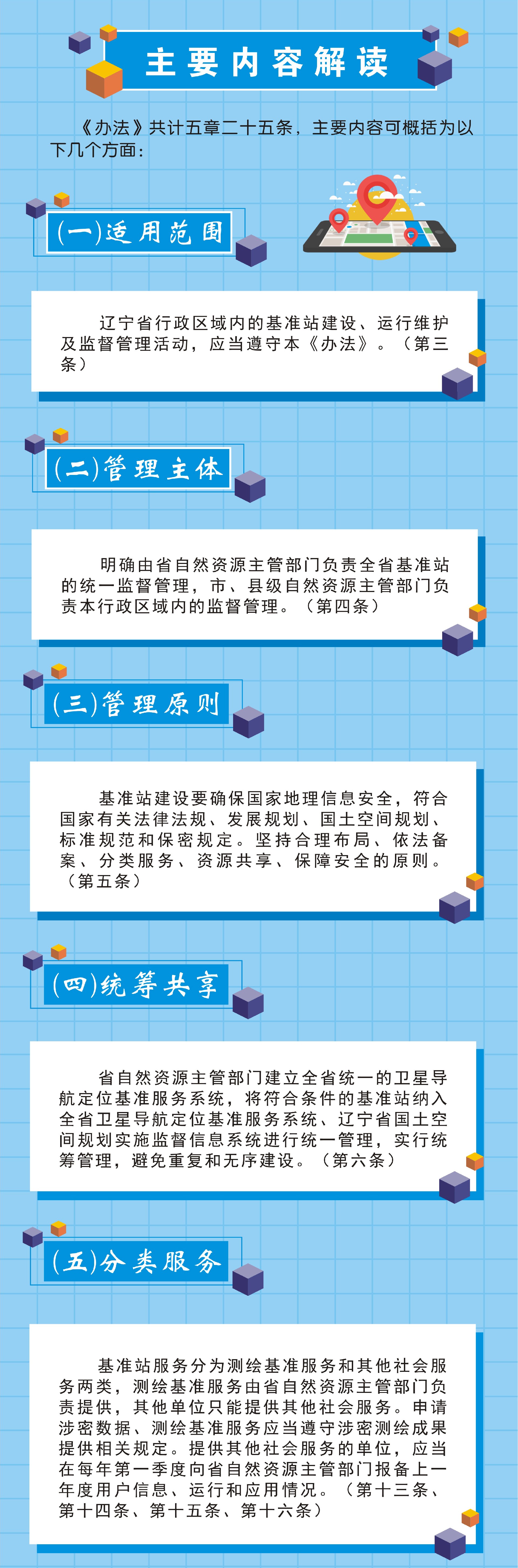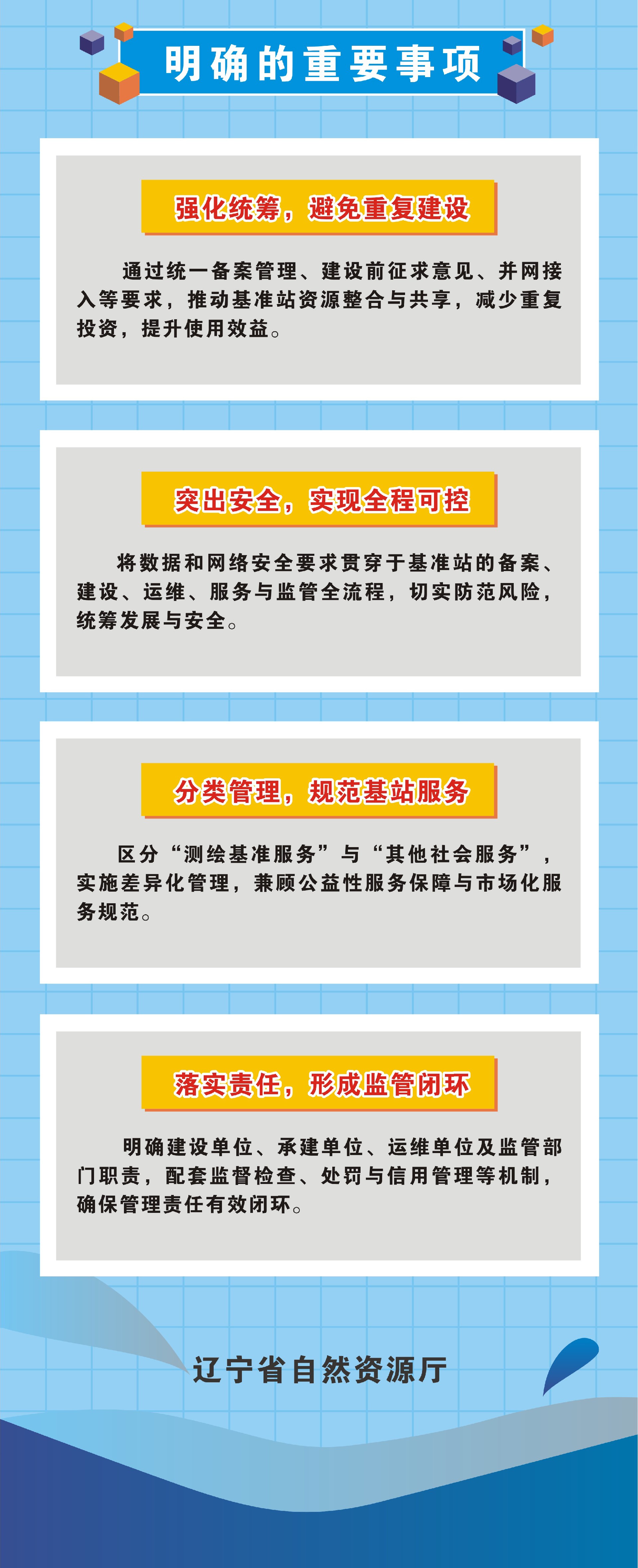 省自然资源主管部门建立全省统一的卫星导航定位基准服务系统,将符合条件的基准站纳入全省卫星导航定位基准服务系统、辽宁省国土空间规划实施监督信息系统进行统一管理,实行统筹管理,避免重复和无序建设。(第六条)